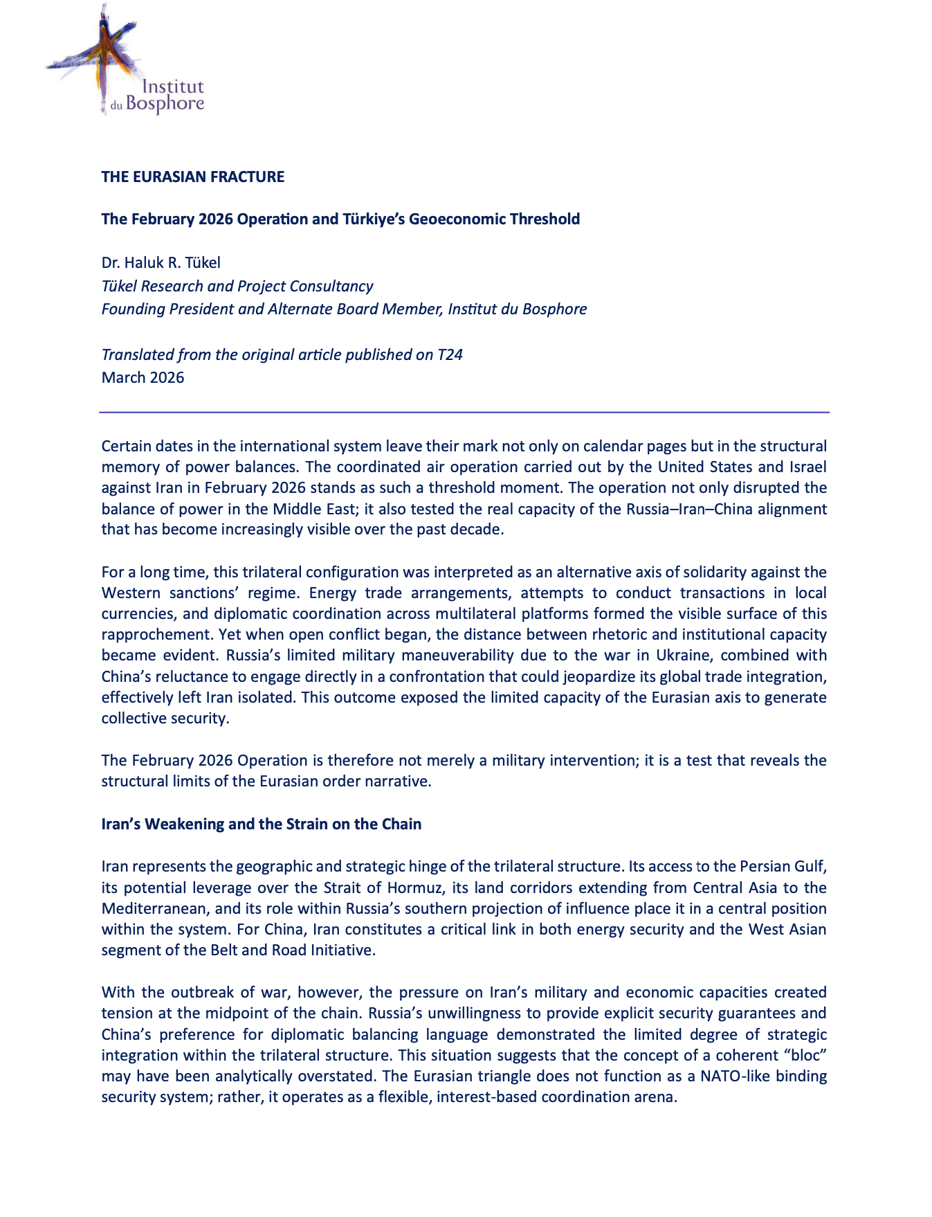 Dr. Haluk R. Tükel, Founding President and Alternate Board Member, Institut du Bosphore