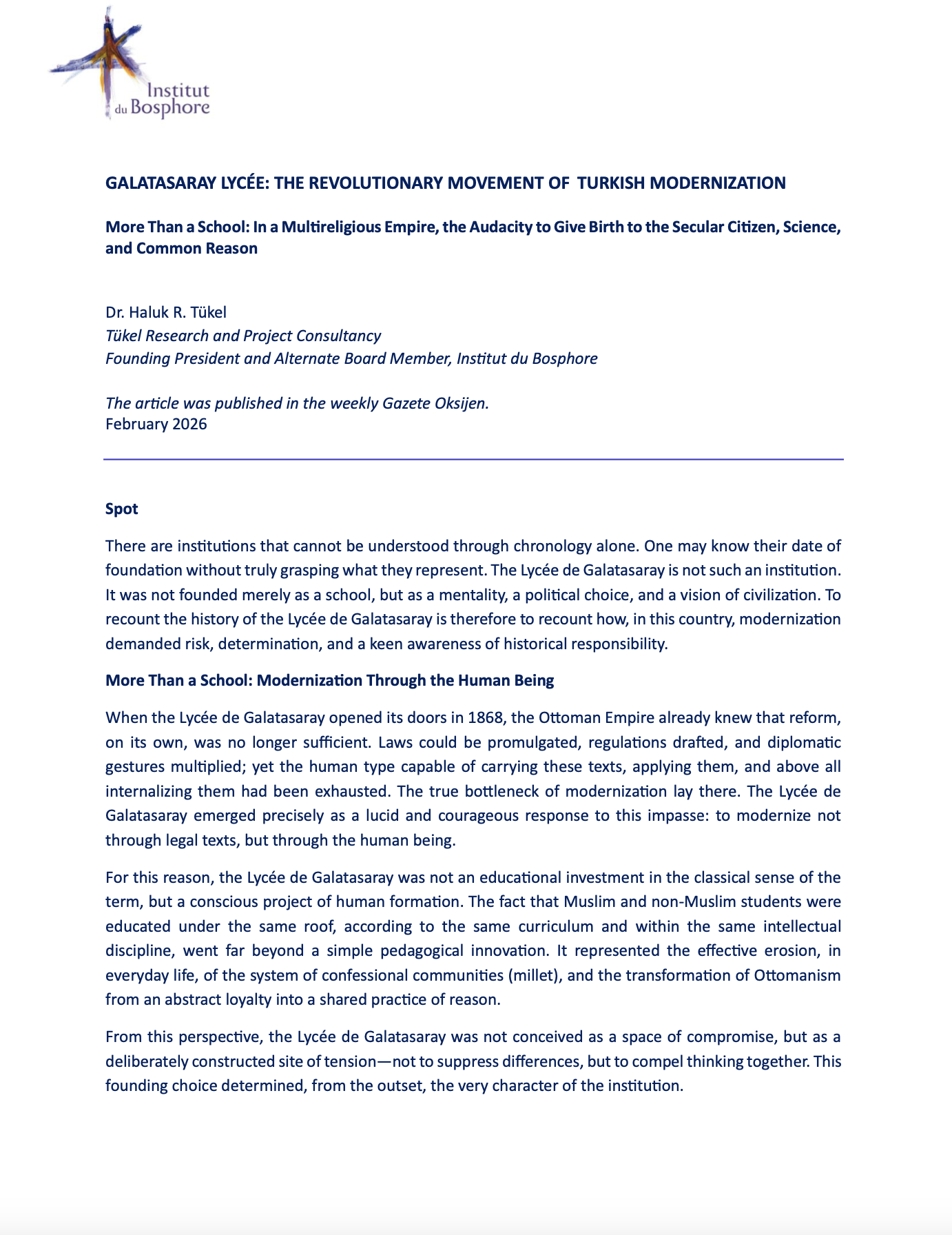 GALATASARAY LYCÉE: THE REVOLUTIONARY MOVEMENT OF TURKISH MODERNIZATION