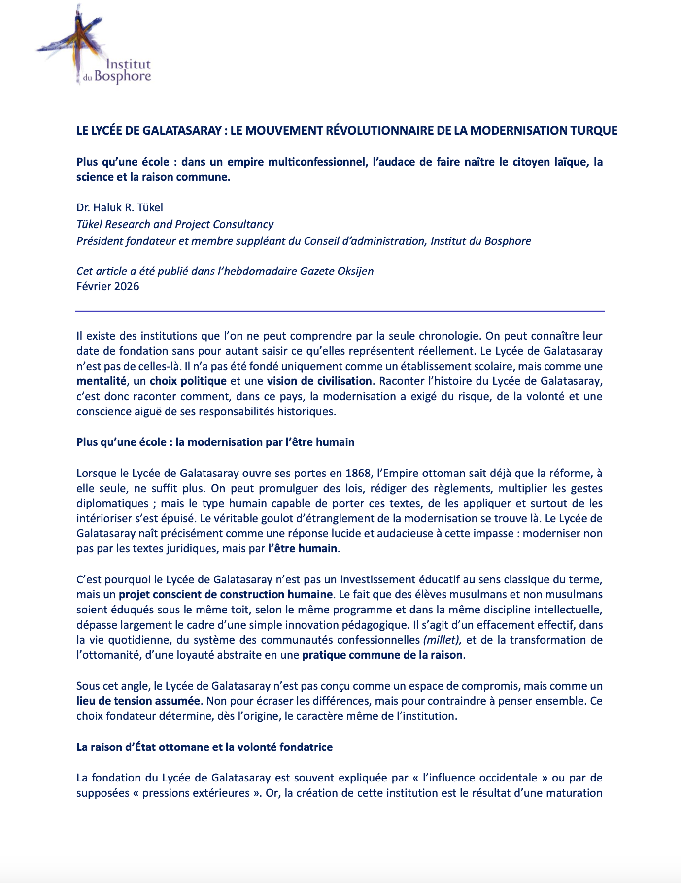 LE LYCÉE DE GALATASARAY : LE MOUVEMENT RÉVOLUTIONNAIRE DE LA MODERNISATION TURQUE